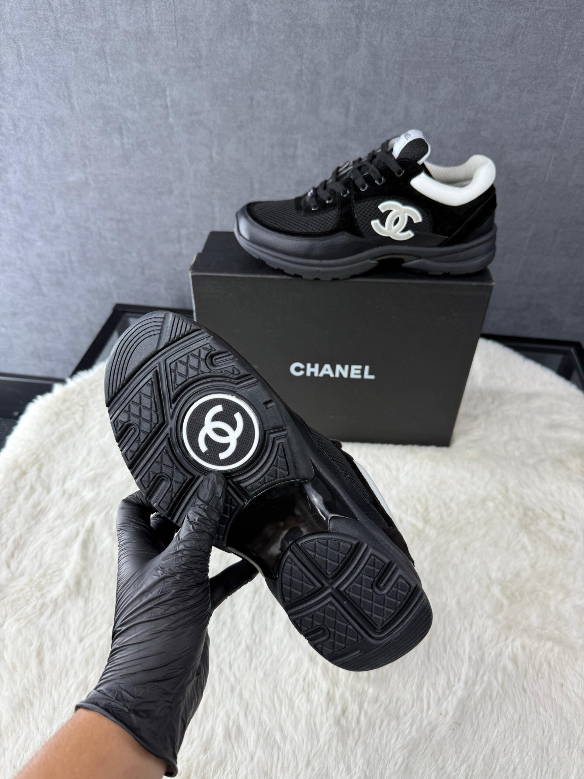 Chanel Sneakers Black (White Logo)