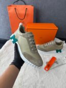 Hermes Bouncing Sneakers Khaki Leather, Blue Logo
