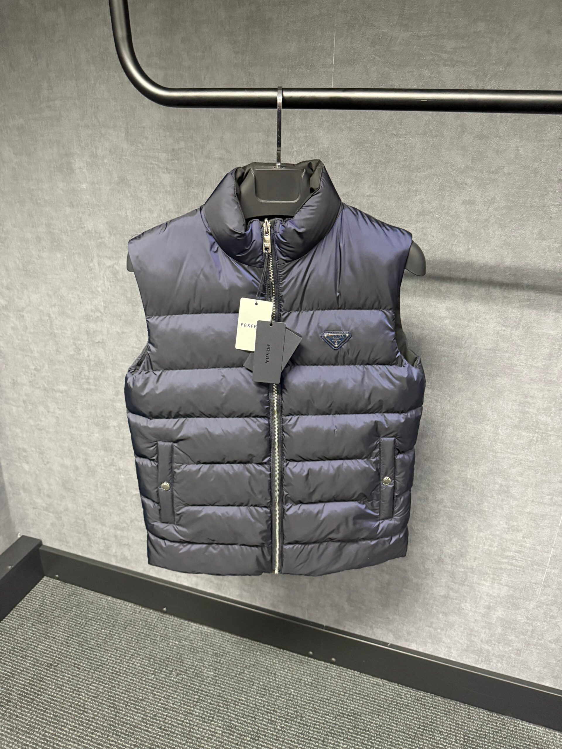 Prada Blue Puffer Full Zipper Quilted Jacket Dubbelzijdig